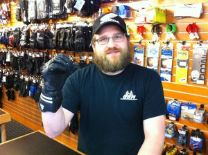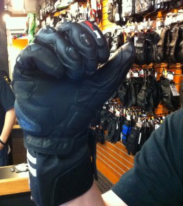 Greater Boston Motorsports in Arlington, MA. A good friend of mine was visiting from NYC, and he just rode up to Boston on his BMW R1200GS. Given that were were out riding for a bit, and it was getting cold outside, my friend was thinking about purchasing a new pair of motorcycle gloves. I don’t blame him. Ski gloves generally won’t cut it, as far as protection or grip goes.